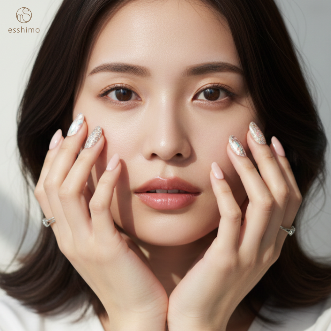そこにオーロラの輝きをあしらうことで、クールさをプラス。華やかなのに派手すぎずシックになじみます。