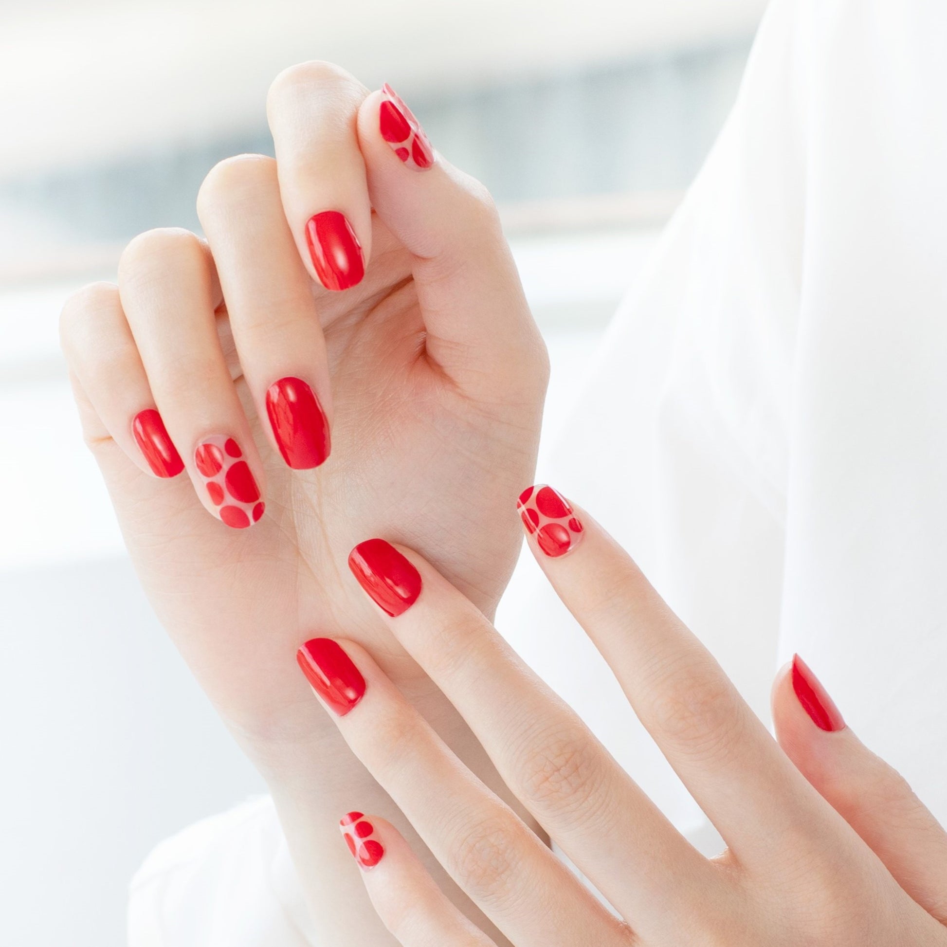 ドット柄はどこでカットしてもグラフィカルになるようにデザインしてあるので、ロングはもちろん、ショートネイルにもOK!