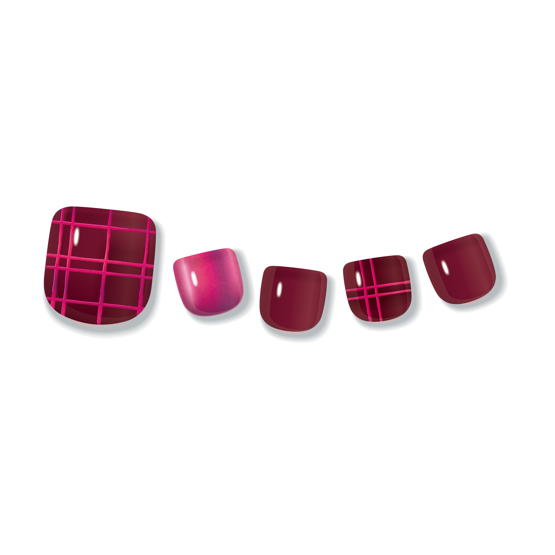 どう組み合わせても可愛くまとまるデザインで、左右で配分を変えても、チェック柄だけ、チェック1本にメタリックピンクだけ、ボルドーピンクだけでもキュート。自在に楽しんで。