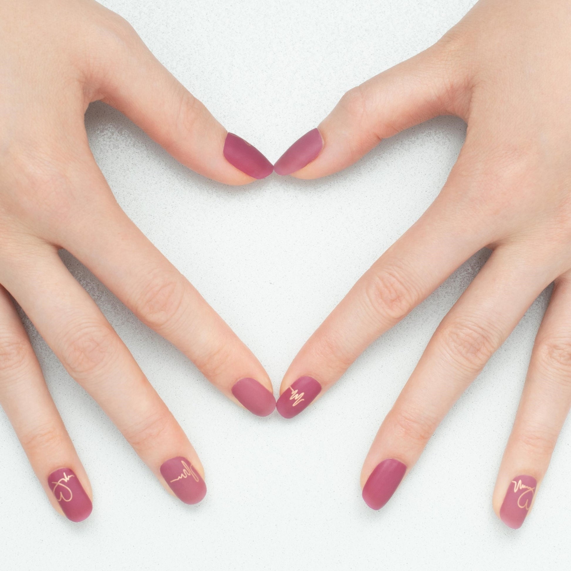 それぞれにあしらったアートはピンクコッパーの極細ラインで描いた心電図を思わせるような“うねうね”ラインと手書き感が可愛いハートモチーフ。