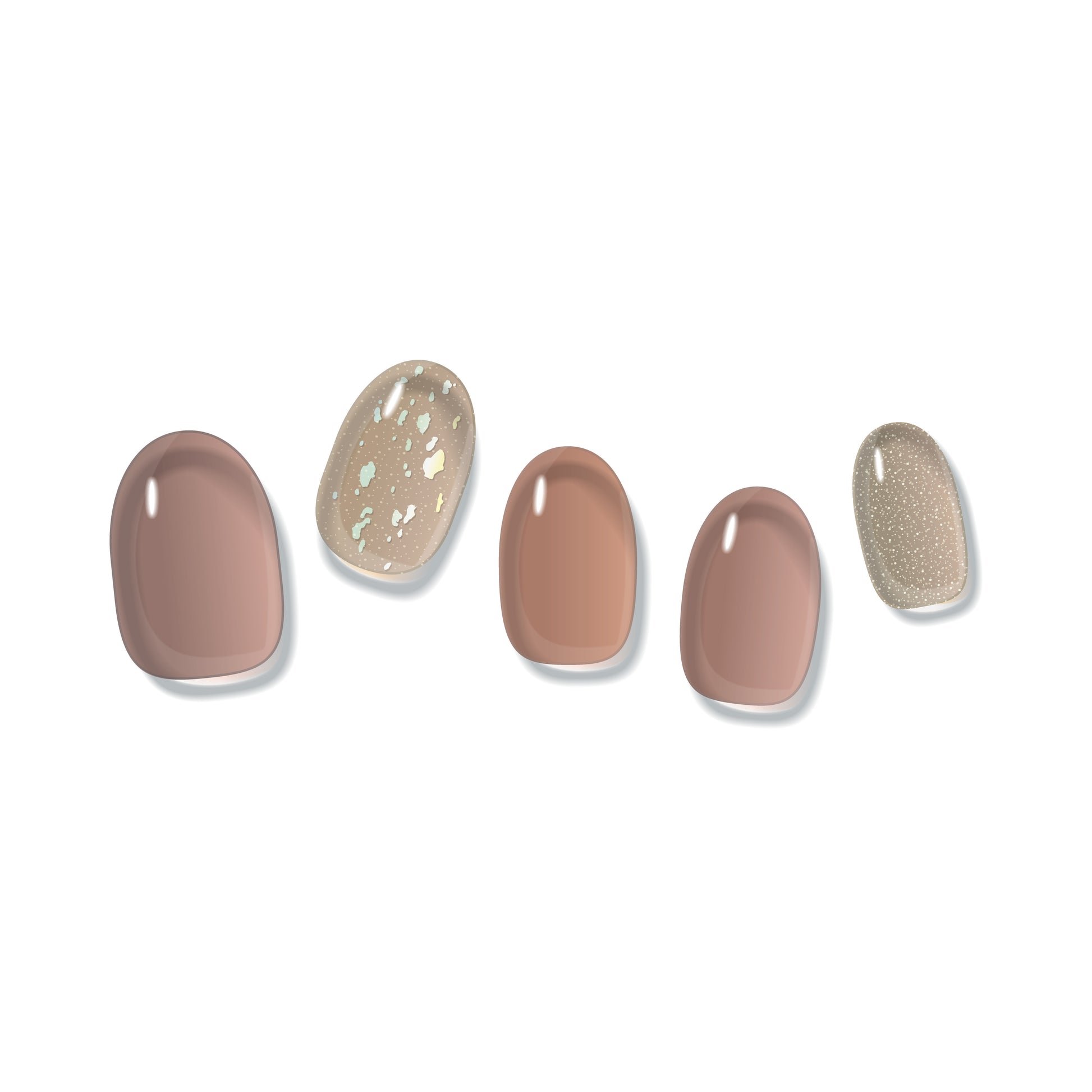 ベーシックなデザインでクリア感のあるマルチブラウン系カラーは、幅広い方々のスタイルにフィット。肌馴染みが良く絶妙なカラーは指先をよりオシャレで綺麗に見せてくれます。ミスト感ラメとランダムなオーロラホロで華やかさをプラス。